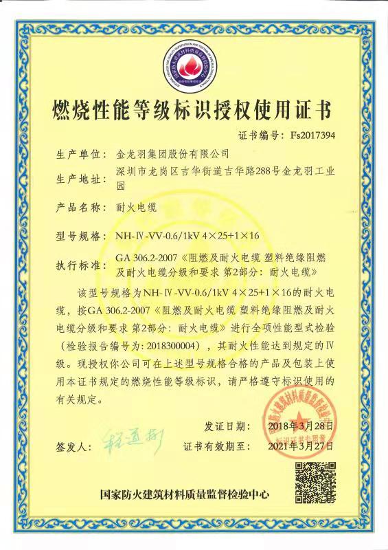 時(shí)電纜不易燃燒,并能阻止燃燒后火焰的蔓延